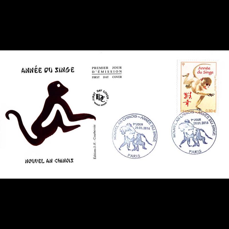 FDC JF - Année du singe - oblit 29/1/2016 Paris