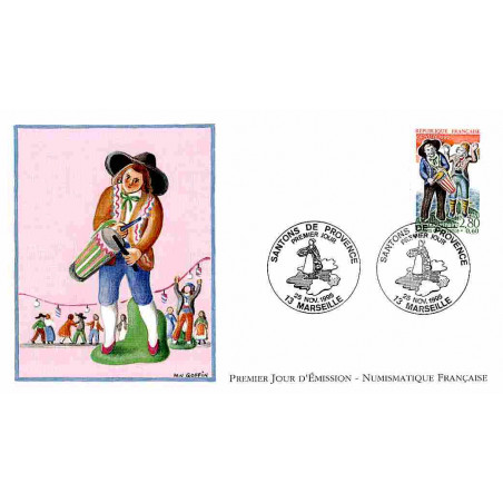 FDC LNF - Les santons de France, le tambourinaire - 25/11/95 Marseille - First Day Cover - Enveloppe premier jour de France.