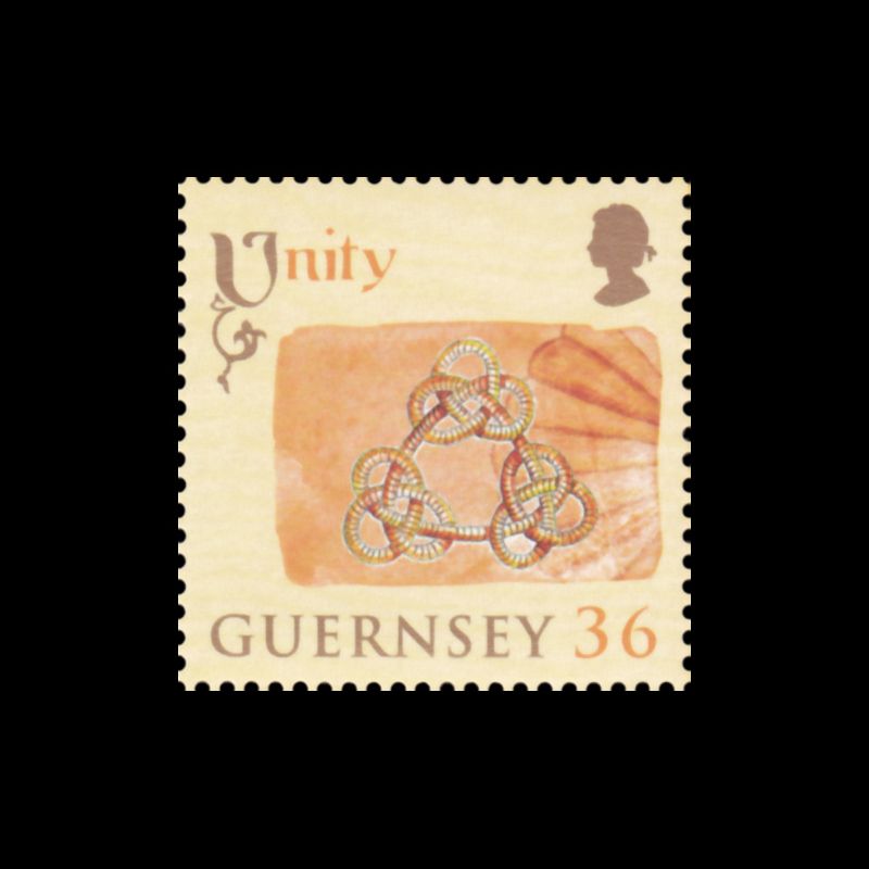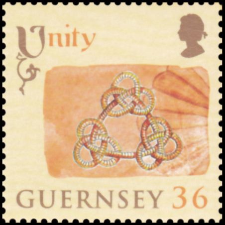 800 ans de loyauté envers la Couronne britannique. Unité entre Guernesey, Jersey et la Couronne (trois noeuds).