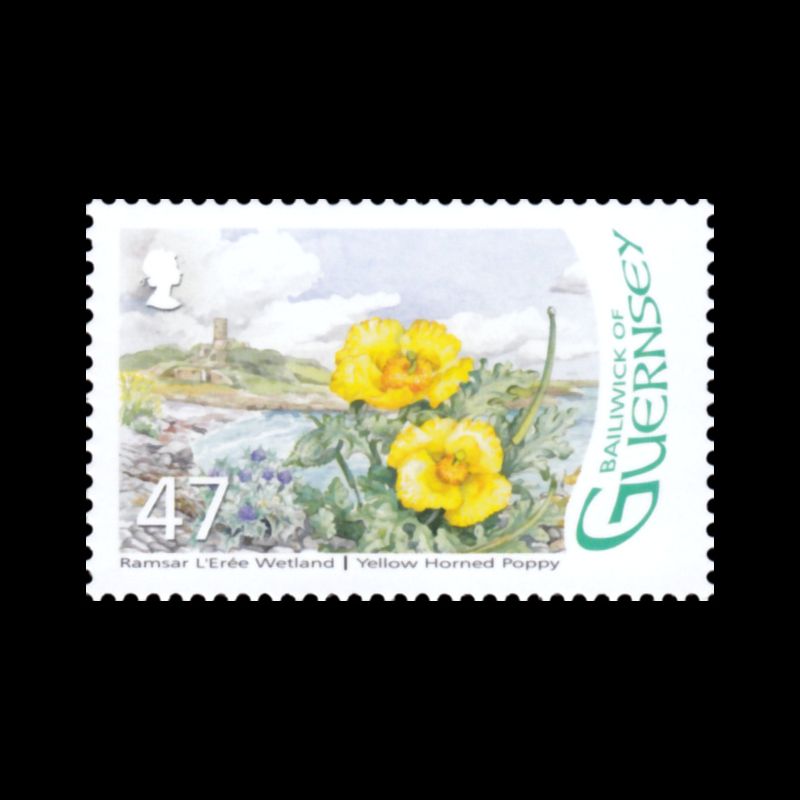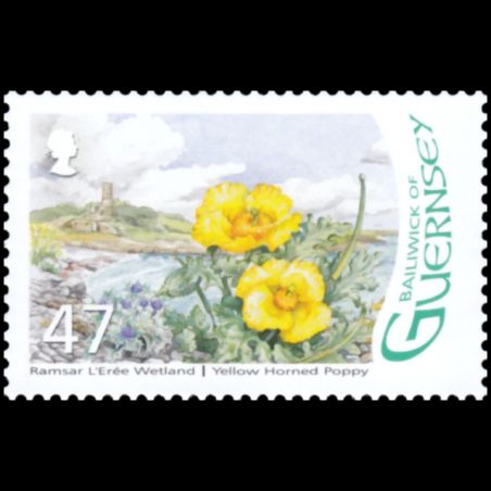 L'Erée, zone humide Ramsar. Faune, flore et monolithe. Pavots cornus jaunes.
