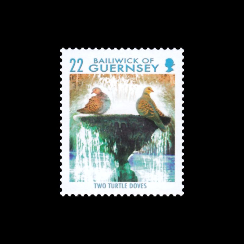 Noël. Les 12 jours de Noël. Deux tourterelles sur fontaine.