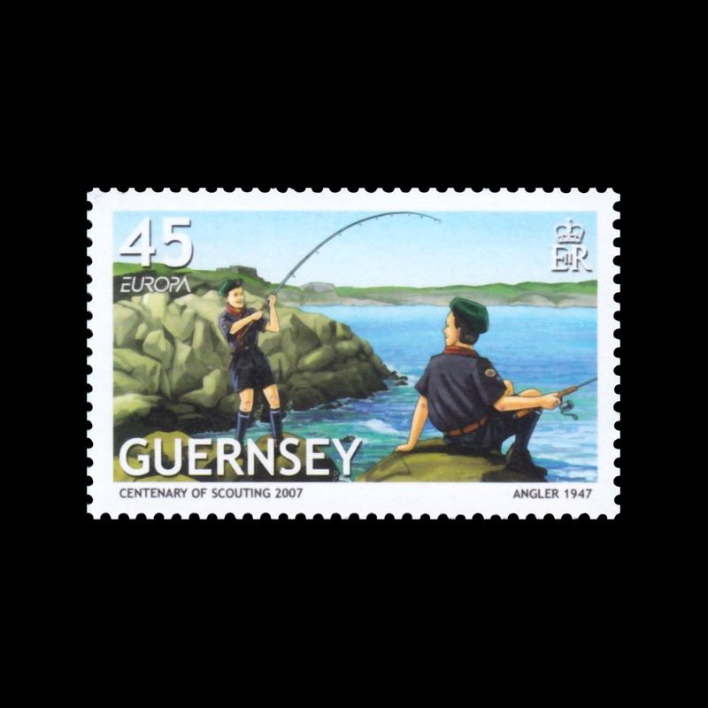 Europa. Centenaire du scoutisme. Scout pêchant en 1947.