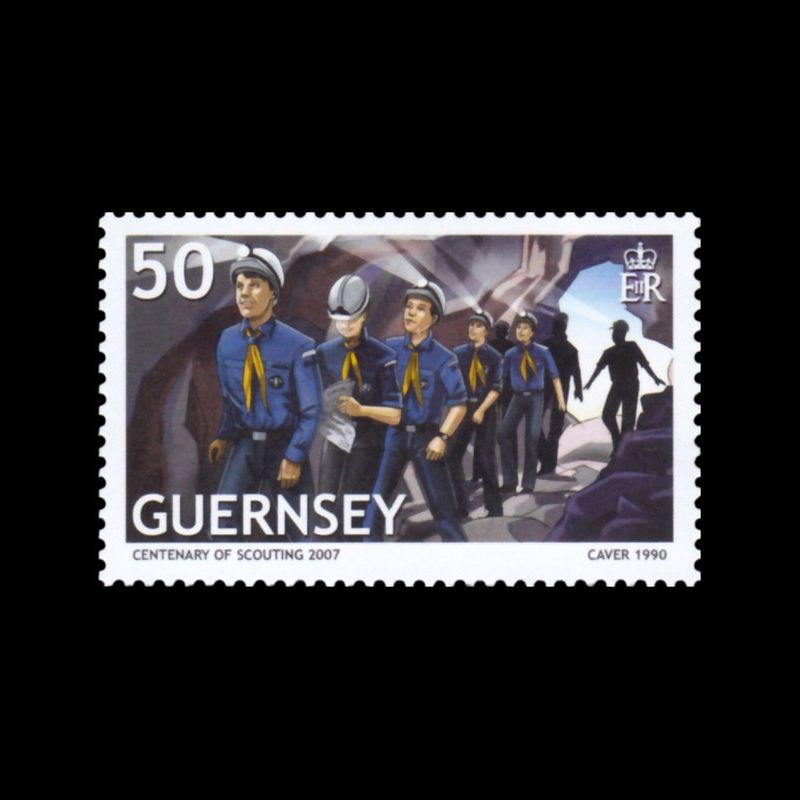 Centenaire du scoutisme. Scouts explorant une grotte en 1990.
