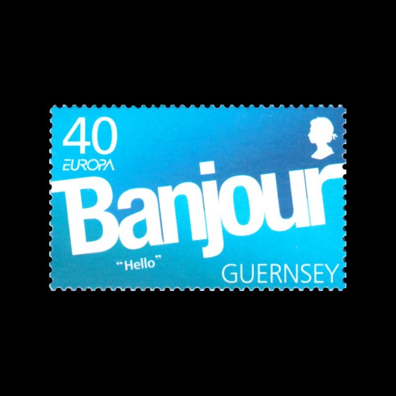 Europa. L'écriture d'une lettre. Expressions en guernesiais (ancien dialecte normand). " Banjour ".