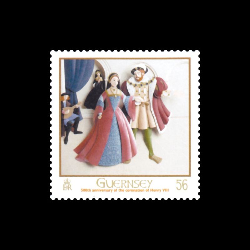 Henri VIII (1491-1547), roi d'Angleterre de 1509 à 1547. Henri VIII et Anne Boylen dansant au son d'un luth.