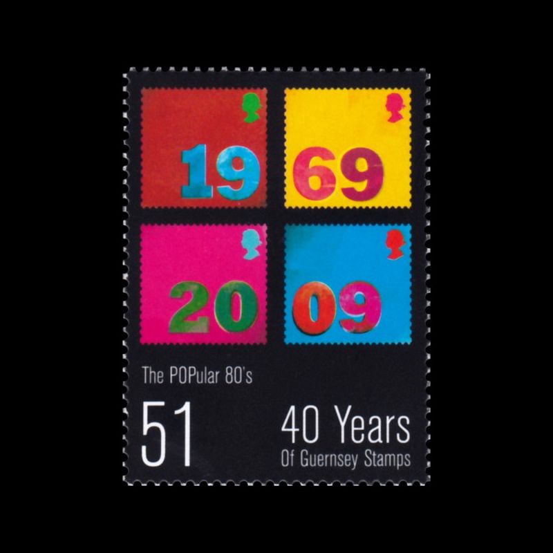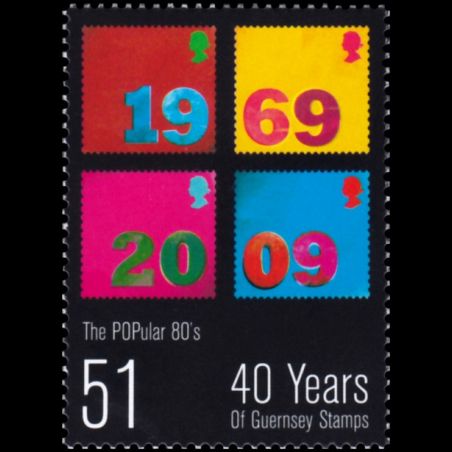 40e anniversaire de l'indépendance postale de Guernesey. Compositions avec "1969-2009 ". Le mouvement pop (1980).