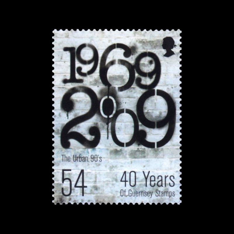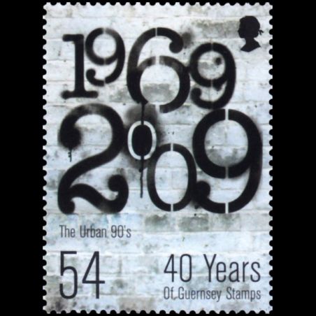 40e anniversaire de l'indépendance postale de Guernesey. Compositions avec "1969-2009 ". Le mouvement urbain (1990).
