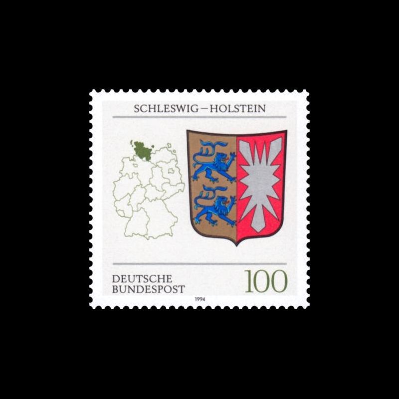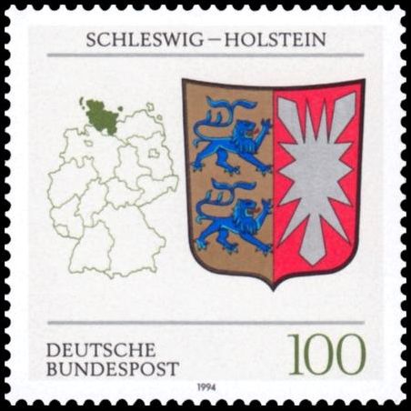 Armoiries des Länder d'Allemagne fédérale. Carte et armoiries de la Schleswig-Holstein.