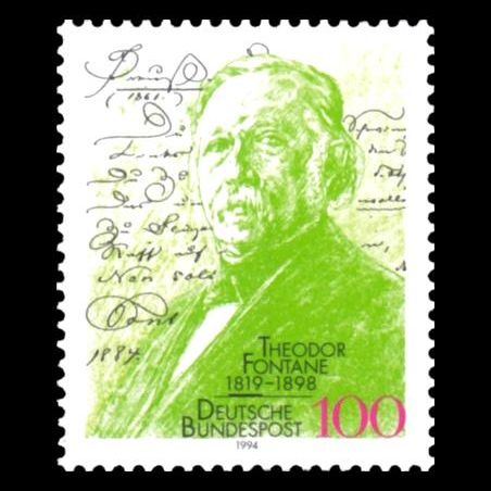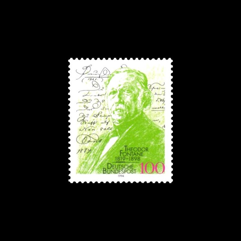 175° anniversaire de la naissance du poète Théodor Fontane (1819-1868). Portrait et détail d'une œuvre.