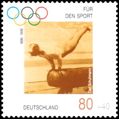 Surtaxe "Pour le sport". Centenaire des Jeux olympiques. Portraits. Carl Schummann (1869-1946), au cheval d'arçons.