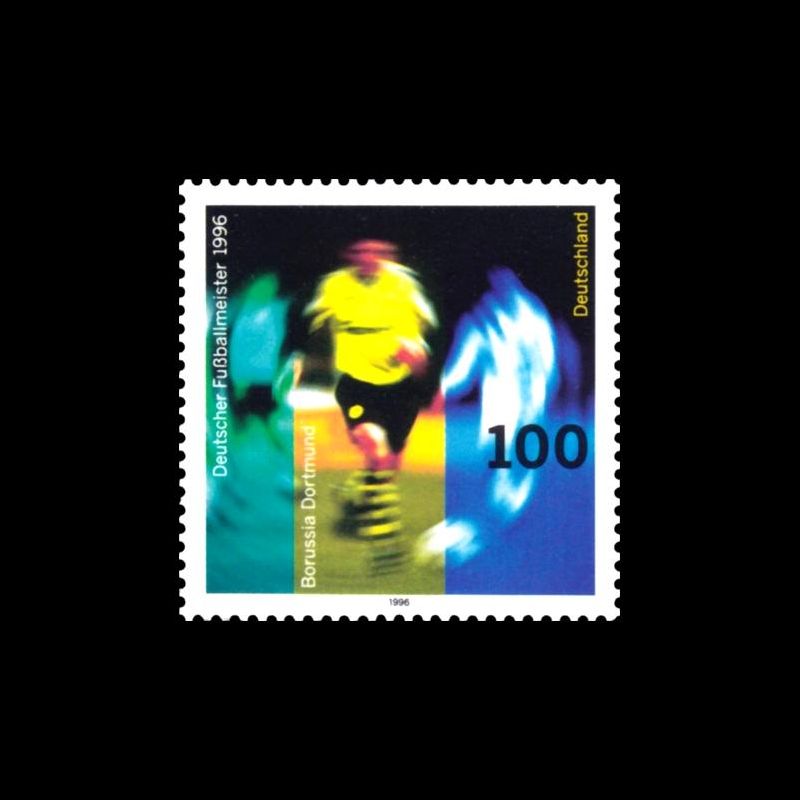 Champion d'Allemagne de football 1996, le "Borussia Dortmund". Vue floue d'un joueur en action.