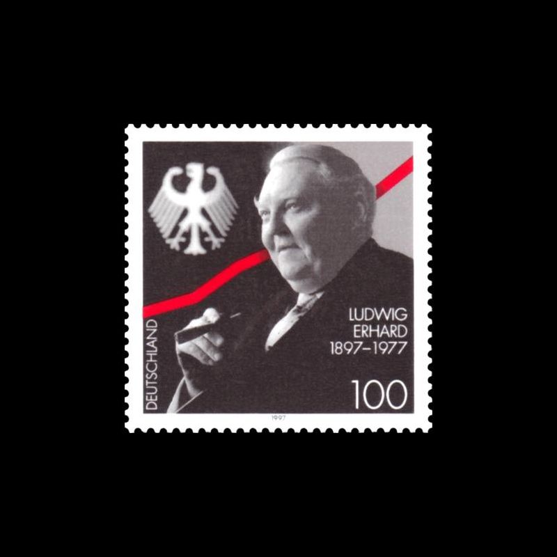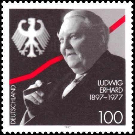 Centenaire de la naissance de Ludwig Erhard, homme politique (1897-1977). Portrait.