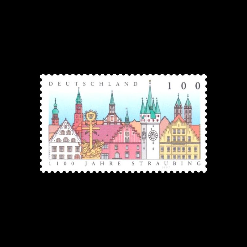 1100° anniversaire de la ville de Straubing. Vue de la ville stylisée.