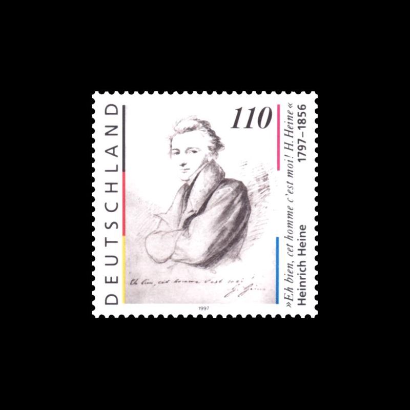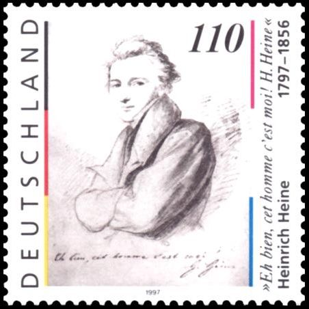Bicentenaire de la naissance de Heinrich Heine (1797-1856), poète et publiciste. Portrait. Fluorescence verte.