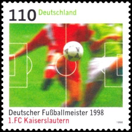 Champion d'Allemagne de football, 1998, le "1.FC Kaiserlaustern". Détail joueurs en action, terrain.
