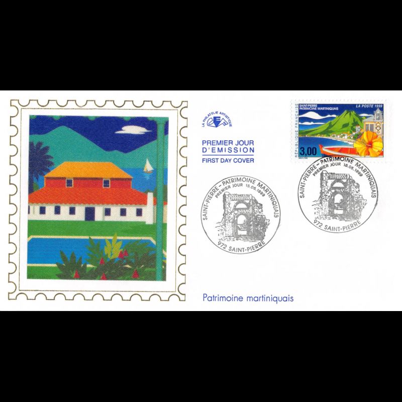 CEF soie - Patrimoine Martiniquais - 15/5/1999 Saint-Pierre - First Day Cover - Enveloppe premier jour de France avec illustration soie.