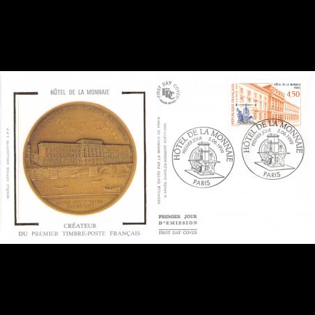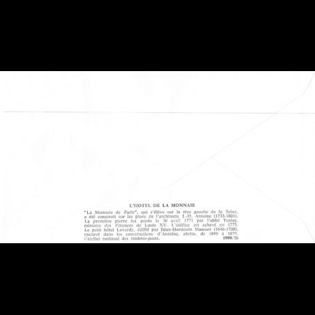 FDC soie - Hôtel de la monnaie - 5/6/1999 Paris - First Day Cover - Enveloppe premier jour de France avec illustration soie.