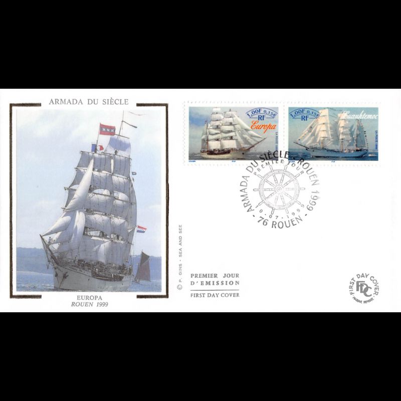 FDC soie - Armada du siècle (3277, 3278) - 10/7/1999 Rouen - First Day Cover - Enveloppe premier jour de France avec illustration soie.