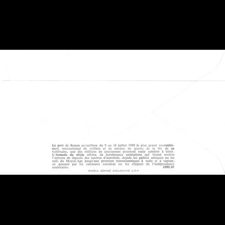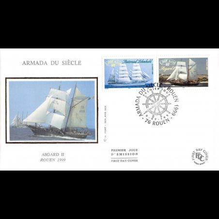 FDC soie - Armada du siècle (3271, 3272) - 10/7/1999 Rouen - First Day Cover - Enveloppe premier jour de France avec illustration soie.