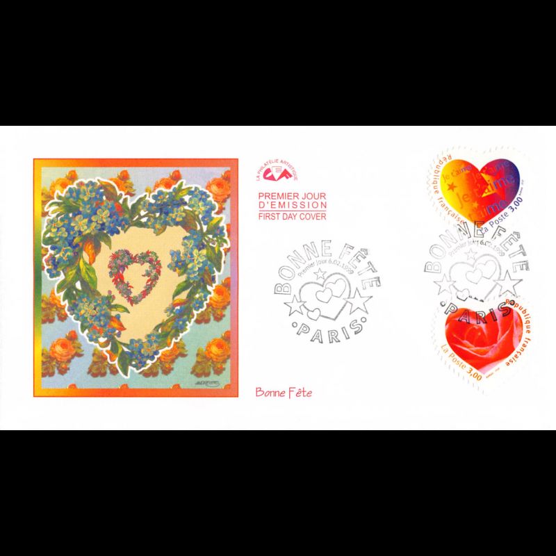 CEF - Timbres cœur (3220 et 3221) - 6/2/1999 Paris - First Day Cover - Enveloppe premier jour de France.