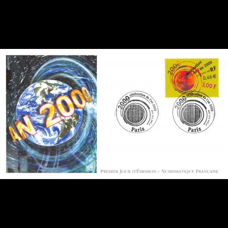 FDC LNF - Célébration de l'an 2000 - 5/7/1999 Paris - First Day Cover - Enveloppe premier jour de France. Edition La Numismatique Française Dimensions de l'enveloppe : 175 x 100 mm