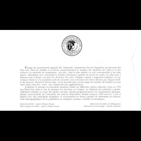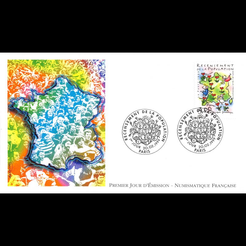 FDC LNF - Recensement de la population - 20/2/1999 Paris - First Day Cover - Enveloppe premier jour de France.