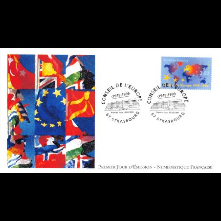 FDC LNF - 50e ann. du Conseil de l'Europe - 19/3/1999 Strasbourg - First Day Cover - Enveloppe premier jour de France.