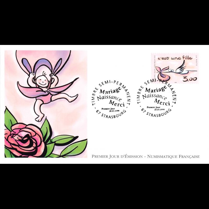 FDC LNF - Timbre festif (C'est une fille) - 20/3/1999 Strasbourg - First Day Cover - Enveloppe premier jour de France.