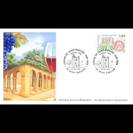 FDC LNF - La Jurade de St Émilion - 29/5/1999 - First Day Cover - Enveloppe premier jour de France. Edition La Numismatique Française Dimensions de l'enveloppe : 175 x 100 mm