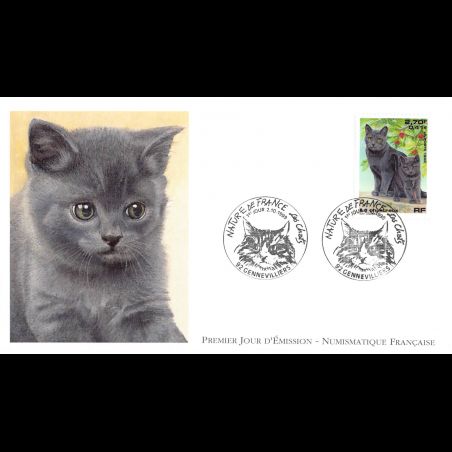 FDC LNF - Les chats - Le chartreux - 2/10/1999 Gennevilliers - First Day Cover - Enveloppe premier jour de France.