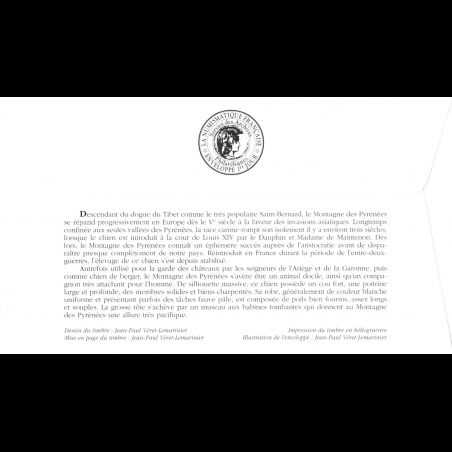 FDC LNF - Les chiens - Le montagne des pyrénées - 2/10/1999 Gennevilliers - First Day Cover - Enveloppe premier jour de France.