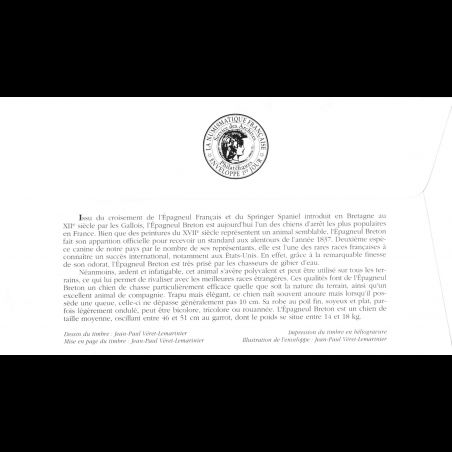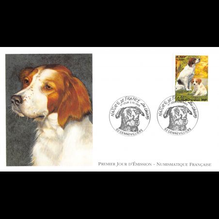 FDC LNF - Les chiens - Epagneul Breton - 2/10/1999 Gennevilliers - First Day Cover - Enveloppe premier jour de France.