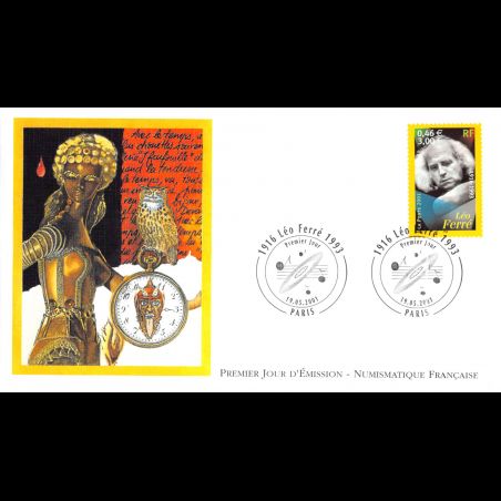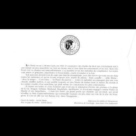 FDC LNF - Artiste de la chanson Française, Léo Ferré - 19/05/2001 Paris - First Day Cover - Enveloppe premier jour de France.