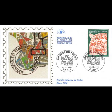 CEF soie - Journée du Timbre. Le Type Blanc (3135) - 21/2/1998 Paris - First Day Cover - Enveloppe premier jour de France avec illustration soie.