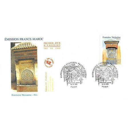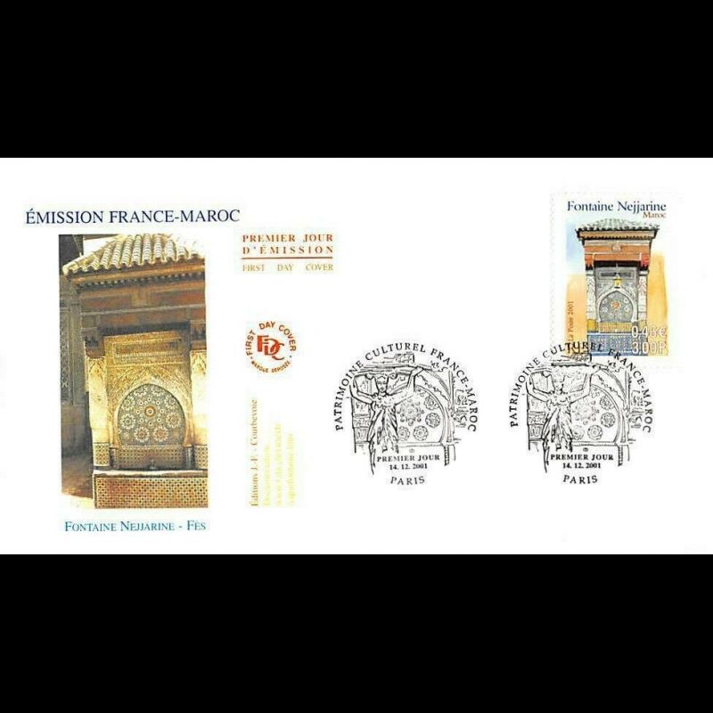 FDC JF - Maroc - Fontaine Nejjarine - 14/12/2001 Paris - First Day Cover - Enveloppe premier jour de France. Edition Jean Farcigny Dimensions de l'enveloppe : 150 x 90 mm