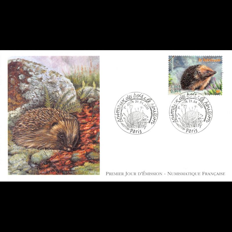 FDC LNF - Animaux des bois - Le hérisson - 21/04/2001 Paris - First Day Cover - Enveloppe premier jour de France.