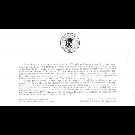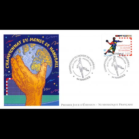 FDC LNF - Championnat du monde de Handball - 20/1/2001 Nantes - First Day Cover - Enveloppe premier jour de France.