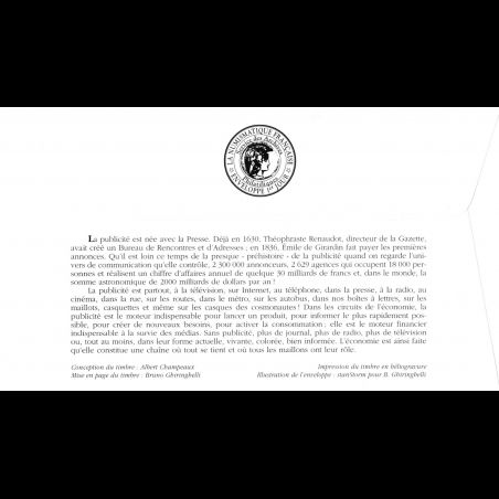 FDC LNF - La publicité - Communication - 17/3/2001 Paris - First Day Cover - Enveloppe premier jour de France.