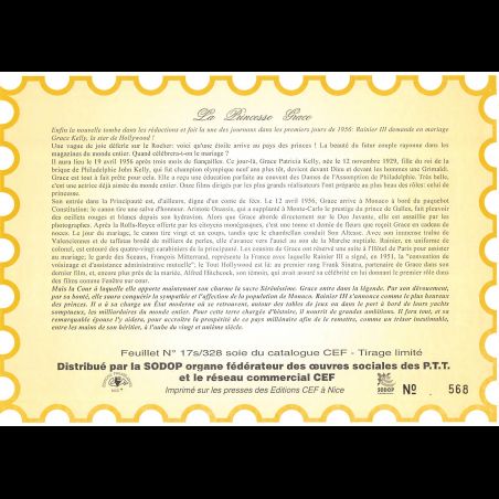 Feuillet CEF n° 17s/328 - La Princesse Grace