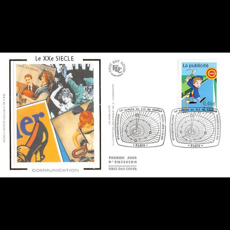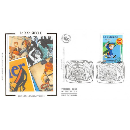 FDC soie - La publicité - Communication - 17/3/2001 Paris - First Day Cover - Enveloppe premier jour de France avec illustration soie.