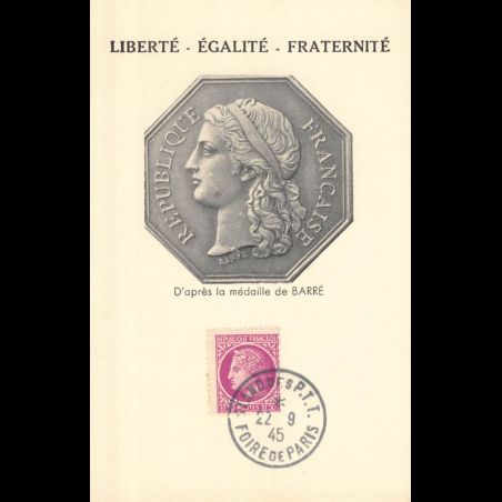 Carte maximum - n° 679 Cérès de Mazelin - Médaille de Barré - Foire de Paris