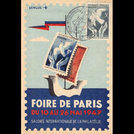 Carte maximum - n° 761 - Conférence de Paris 1946 - Foire de Paris 1947