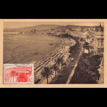 Carte maximum - n° 777 - Cannes. La plage et la promenade de la Croisette