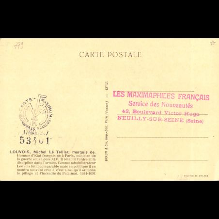 Carte maximum v2 - n° 779 - Journée du timbre 1947 - Louvois