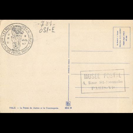 Carte maximum v3 - n° 781 - Congrès de l'union postale universelle - La conciergerie à Paris