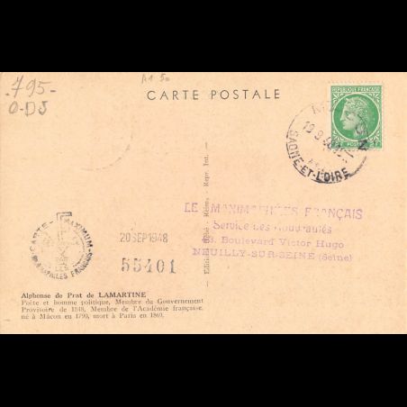 Carte maximum v12 - n° 795 - Personnage célèbre - Alphonse Prat de LAMARTINE