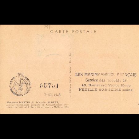 Carte maximum - n° 798 - Personnage célèbre - Alexandre MARTIN