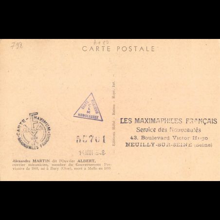 Carte maximum v4 - n° 798 - Personnage célèbre - Alexandre MARTIN