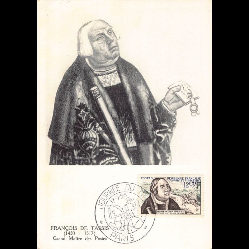 Carte maximum - n° 1054 - Journée du timbre. François de Tassis et courrier à cheval