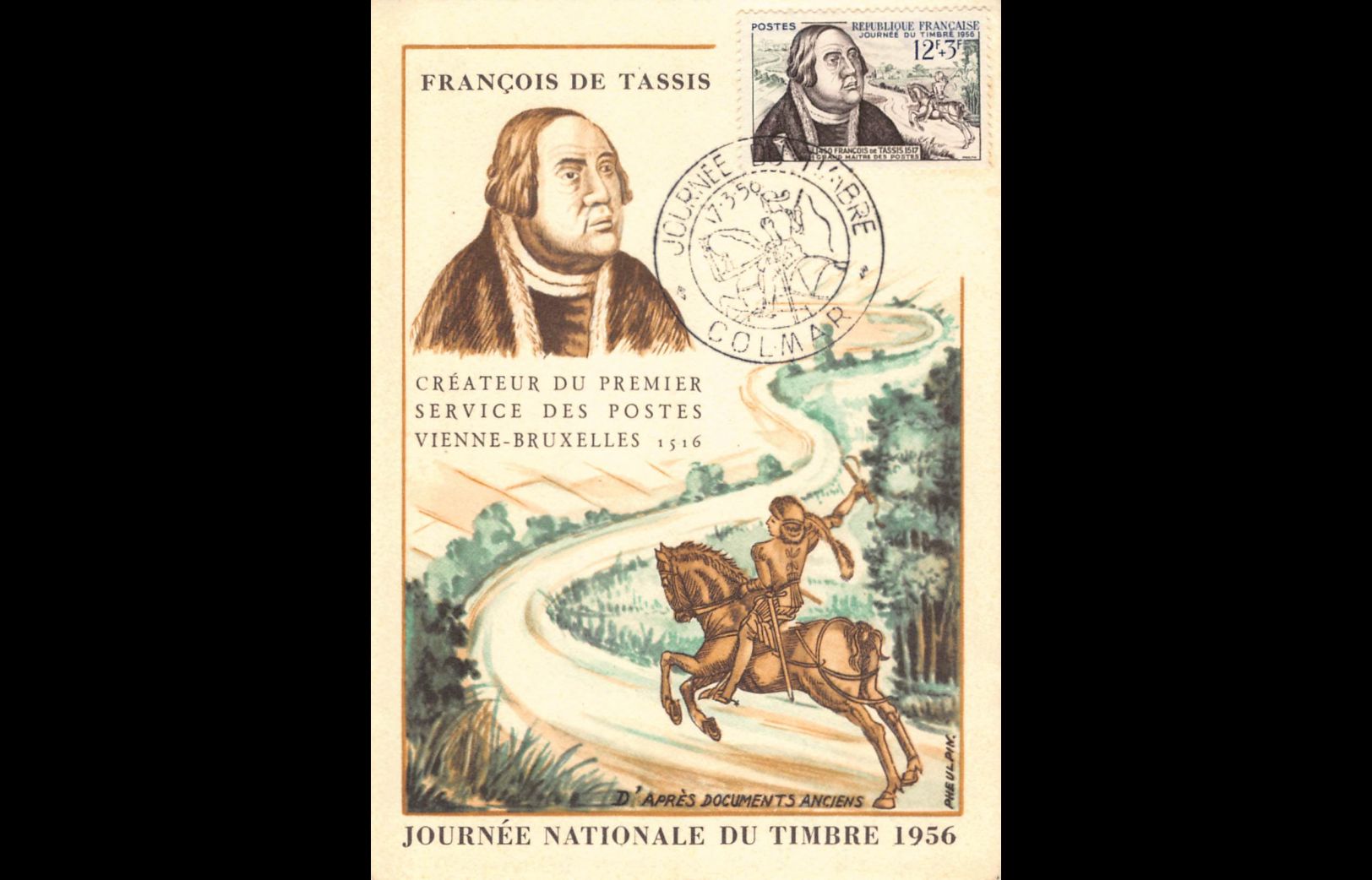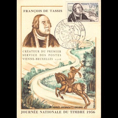 Carte maximum v4 - n° 1054 - Journée du timbre. François de Tassis et courrier à cheval